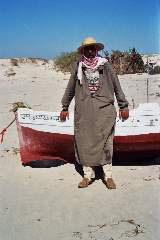 Dan pred odhodom, ko sem raziskovala še povsem prazno obalo otoka Djerba, sem spoznala Jacoba. Razen naju, na prostrani obali ni bilo žive duše. Nikoli ga ne bom pozabila. Nabiral je školjke. Za prodajo, kajti turistična sezona je bila pred vrati. Ko me je zagledal, se je ustavil, se zravnal in me pričakal kot stari znanec. Izza debelega zimskega plašča je kukal še debelejši pulover, po vzorcu podoben norveškemu. Glavo je imel zamotano v tradicionalno ruto, na katero je poveznil še slamnik z velikimi krajci. In med vsemi tistimi cunjami in kocinami so se iskrile prijazne starčeve oči. Od kod, kako, kdaj, zakaj, vse bi rad izvedel o meni. Ponujal mi je školjke, želel si je moje družbe. Prosila sem ga za fotografijo. Razveselil se je in se mi povsem prepustil v poziranju. Izrazil je edino željo – viden napis na njegovem preprostem čolnu. Tekoče je obvladal tri svetovne jezike in kar malce sram me je bilo mojih »polomljenih stavkov«. Začutila sem globino in širino malega, preprostega človeka, neizmerno zakladnico modrosti. Našla sem to, kar sem iskala.Vselej mi je hudo, ko se vračam domov. Toliko čudovitih krajev in ljudi puščam za seboj in ne vem, ali jih bom sploh še kdaj videla? Kjer koli hodim, v zameno puščam del sebe, povsod sem že raztresena. Po delčkih se sestavljam v mozaik na turoben navaden dan, vedno več me je in vse bogatejša postajam.
