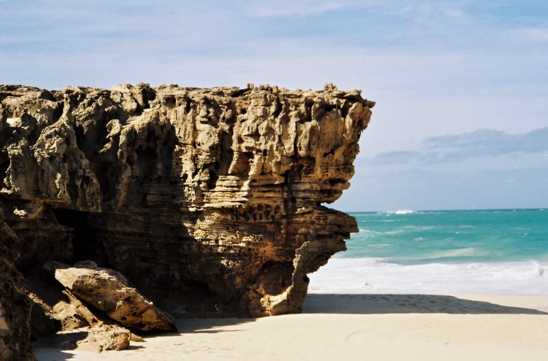 Prispeli smo. Santa Monika, vsa košček Boa Viste, kot dobra mati jočem za teboj, po tvoji deviško nedotakljivi belini. Bojim se, da bo prekmalu prišel čas, ko te bodo nasilno razdevičili beli ljudje. Barantali bodo s teboj kot na bolšjem sejmu. Pozidali bodo hotele in v njih ponudili nešteto cenenih zabav zdolgočasenim, odtujenim in vsega naveličanim turistom. Za zdaj še obstaja kanček upanja, da se bo zavest odgovornih ljudi dvignila do te meje, da bodo še pravočasno znali zaščiti zadnje dragulje. Nazaj grede smo se ustavili ob zanimivi pečini, pod katero se razprostira velika naravna jama. Morje je tu s svojimi močnimi valovi izdolblo v razčlenjenih skalah še posebno zanimive okrogle čašice.
