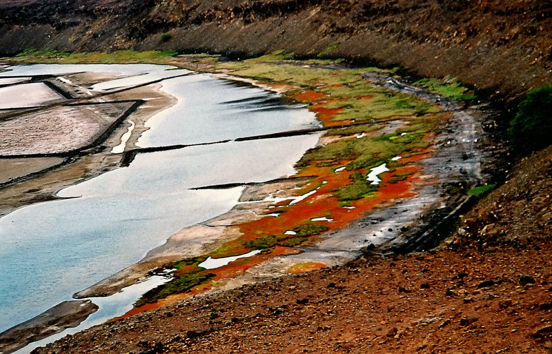 Taksist, ki je naju zapeljal na severni del otoka, do Pedra Lume, kjer se cesta konča, naju je samo začudeno gledal, ko sva ga vprašali za pristop do najvišjega vrha otoka Sal - Monte Grande. Verjetno sva se mu zdeli malo »utrgani«, kaj iščeva tu naokrog, kajti njemu, domačinu, je bila od tu dalje povsem nepoznana dežela. Res, lahko bi mirno poležavali ob bazenu, pili kavo in avtohtono žensko pijačo Ponč (podobna je naši medici) in se zabavali s hotelskimi animacijami.Do vulkanskega kraterja – solin - pelje solidna pot za terenska vozila. Na priobalnem delu odvažajo s kamioni kamenje, s katerim tlakujejo vse na novo grajene ceste. Kamenje, pesek in sol pa je edino, kar je dala narava tu v izobilju. Po petnajstih minutah hoje sva zagledali predor, ki vodi v notranjost kraterja. Menda je vse skupaj pred leti odkupil italijanski državljan. V beli solnici se zaenkrat še prosto in zastonj namakate, verjetno pa ne bo dolgo tako. Redkim turistom nudijo tudi blatne obloge in masaže.
