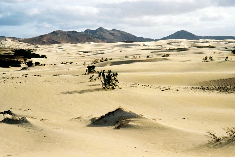 Prvo noč naju je presenetil dež, od decembra do maja namreč praviloma traja sušno obdobje. Ves ta čas piha stalen veter, od 4 do 5, včasih celo 6 Bf, menda je to raj za mojstre deskanja. Suho, tropsko podnebje prinaša oblake vodonosce le od avgusta do oktobra, ostalo obdobje pa je suša, suša, suša… Topel veter čara peščene sipine, zaide med zobe, v lasišče, ušesa, oblačila… Tu vedo, koliko je vredna voda, pitne vode namreč v naravi ni! Danes morsko vodo razsoljujejo v pristaniškem mestu Palmeira do te mere, da je pitna, vendar je zaradi slabega vodovoda v hotelu s štirimi zvezdicami povsem rjava in neužitna. Domačini z boljšim standardom imajo nameščene na strehi nekakšne buče, napolnjene z vodo, od tu pa imajo napeljano v stanovanje. Tisti revnejši, teh je največ, pa jo še vedno nosijo v vedrih na glavah.
